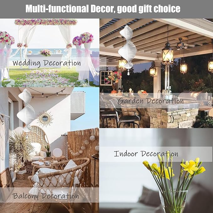• 【Easy Assemble and Hang】 With easy to follow instructions for installation, no additional tools are necessary. Just pull and tweak to fan out the sections evenly. Simply hang the wind spinner in a location which catches the breeze and enjoy the kinetic movement of our outdoor wind spinners in the slightest of breeze. Designed with a hole on the bottom edge, you can hang some pendants and accessories according to your preferences.