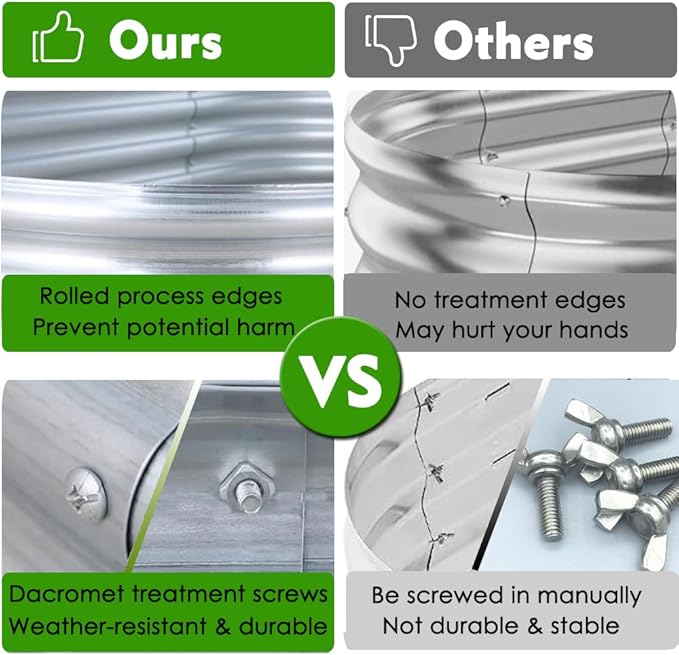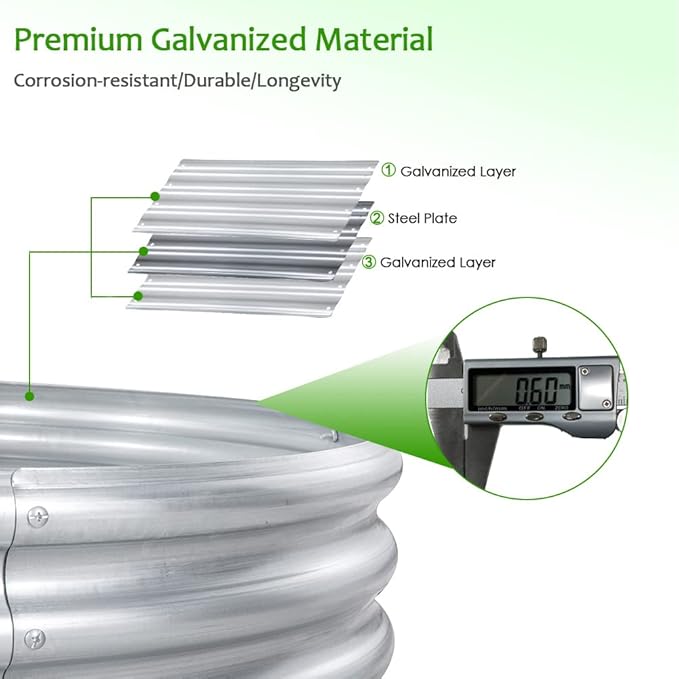• DURABLE & STABLE: Made of premium galvanized steel sheet features long-lasting use during kinds of weather, more stable and durable than wooden planters. The wave stripe and reinforced corner enhance the structure and expands life span of garden bed. 17.3 inch tall design brings more comfortable gardening experience