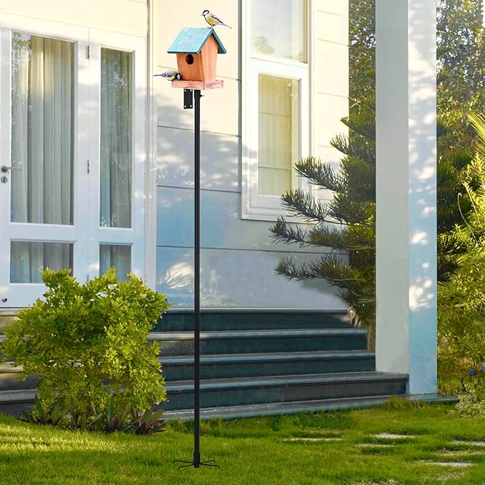 • STURDY DESIGN: Our pole kit provides solid prongs base to support bird feeders, house. Thanks to the metal powder-coated so it will not rust easily. The diameter of pole is 0.9 inch. The pole height is 96 inch. The bird house is not included in the package