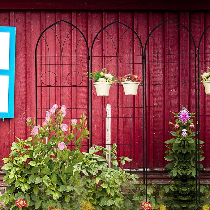 • Plants Supporting Trellis: This metal garden trellis is perfect for supporting all kinds of flowering trellis plants, wall-climbing vines. It allows them to grow naturally up towards the top.