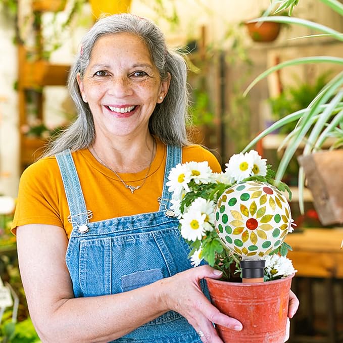 • Save Time:The large plant watering globes is made of mosaic globes and terracotta clay. Self waterer spikes size is 9.88''x4.4''.Terracotta watering spikes work through osmosis to moisten the soil and the plant root.