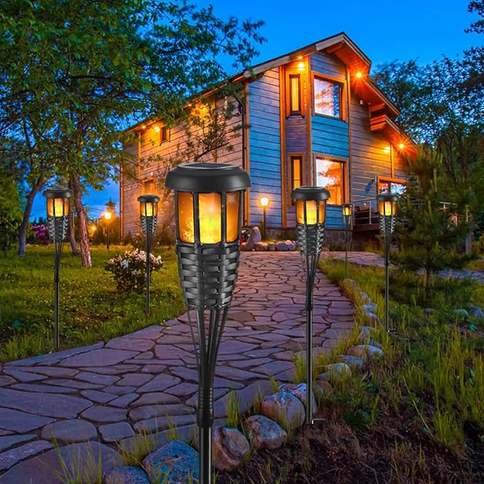 • Realistic Flame: The solar torch light with 36 flickering LEDs emit a flame like light, providing a wonderful atmosphere