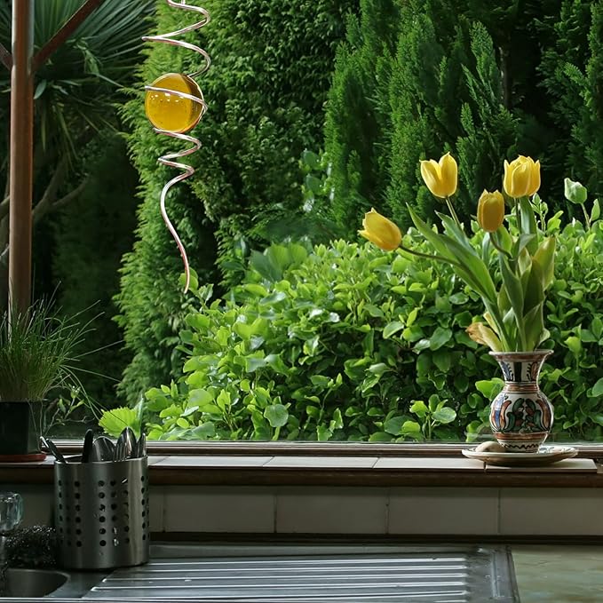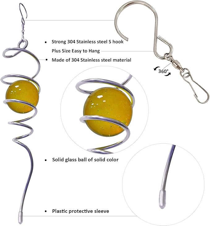 • 【Unique Spiral Design】The gazing ball spiral tail is an unique hanging ornament ,Also it can help to stabilize 3D wind spinners or yard decor from swing when it rotate.When the spiral tail rotates to the left, the glass ball seems to move upwards,when the spiral tail rotates to the right, the glass ball seems to moves downward,the glass ball seems to like floating and dancing in air, presenting a magical optical illusion!
