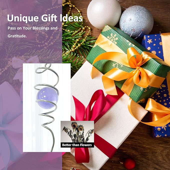 • 【Unique Spiral Design】The gazing ball spiral is an unique hanging ornament ,Also it can help to stabilize 3D wind spinners or yard decor from swing when it rotate.When the spiral tail rotates to the left, the glass ball seems to move upwards,when the spiral tail rotates to the right, the glass ball seems to moves downward,the glass ball seems to like floating and dancing in air, presenting a magical optical illusion!