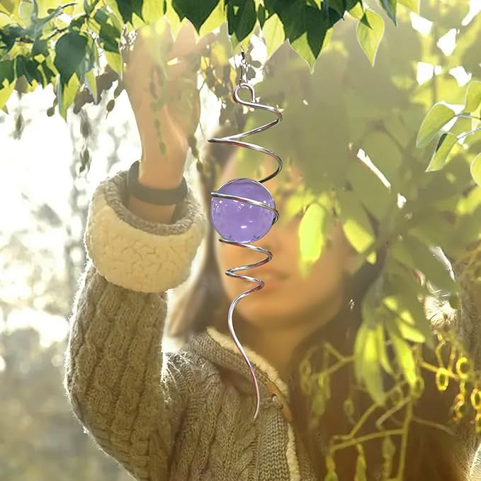 • 【Easy To Position】The Spiral can't spin by itself ,if you want to make it spin like the video ,need add 1pc motor (not include) ,or combine it with a wind spinner or any rotatable hanging ornament to help it rotate. Come with 1pc 2 inch colored glass orb(not paint), 1pc silver color spiral tail twister,and 1pc swivel hook accessory, ready to hang and enjoy.