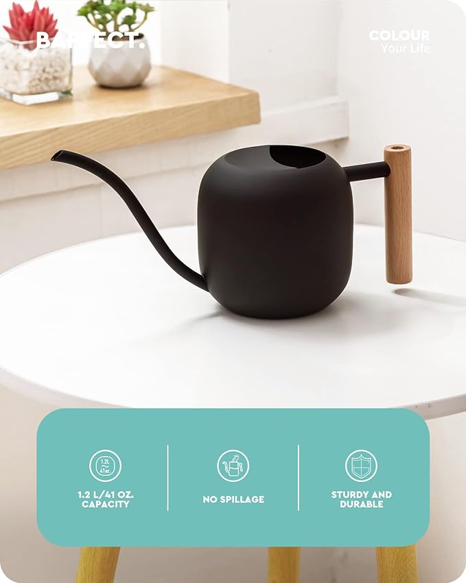 • Elegant appearance - This indoor plant watering can features a drum-like metal body in matte black with a wooden handle for comfortable grip. You can place this elegant garden watering can on your indoor plants shelf as a decorative ornament.