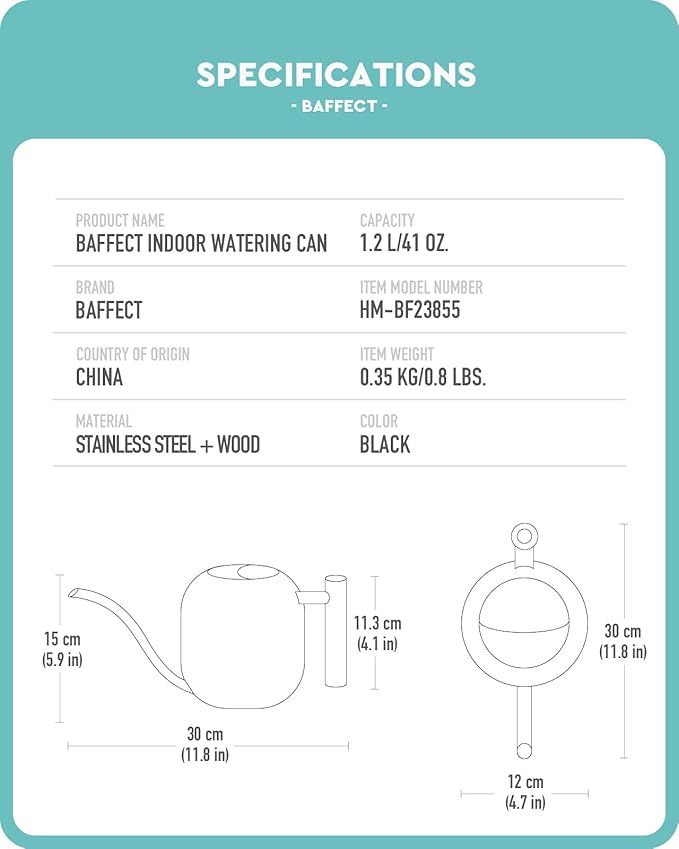 • Ideal capacity - The capacity of Baffect Indoor Watering Can is 1.2L/41oz, making it ideal for watering small houseplants. With its ideal capacity, this indoor houseplant watering can allows you to water multiple small bonsai without frequent refilling.