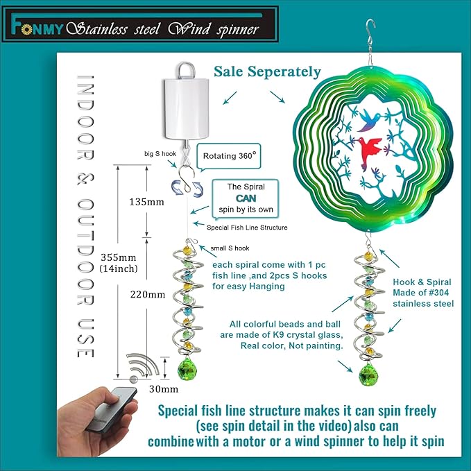 • 【PREMIUM CRYSTAL SUNCATCHER】The spiral with crystal is a special sun catcher rainbow maker, it’s Super Sparkly under sunshine. You can also add a motor(not include) to let the spiral to spin ,while spiral tail rotating (it can’t spin by itself.), the crystal ball seems to move up and down like floating and dancing in air, presents the magical visual illusion.