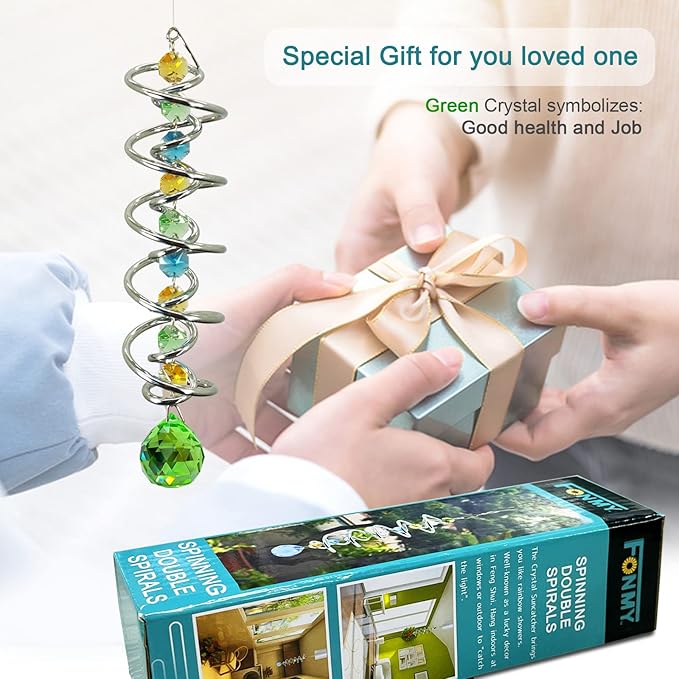 • 【HIGH QUALITY】:Made of stainless steel wire and crystal material, specail double structure spiral tail w/ solid green color K9 crystal glass ball and raibow color chain crystals , promised good weather resistant and amazing decoration. All FONMY crystal ball made of top crystal glass material with finely crafted, high clarity and cast beautiful rainbows, could turn the sun's rays into many rainbows.