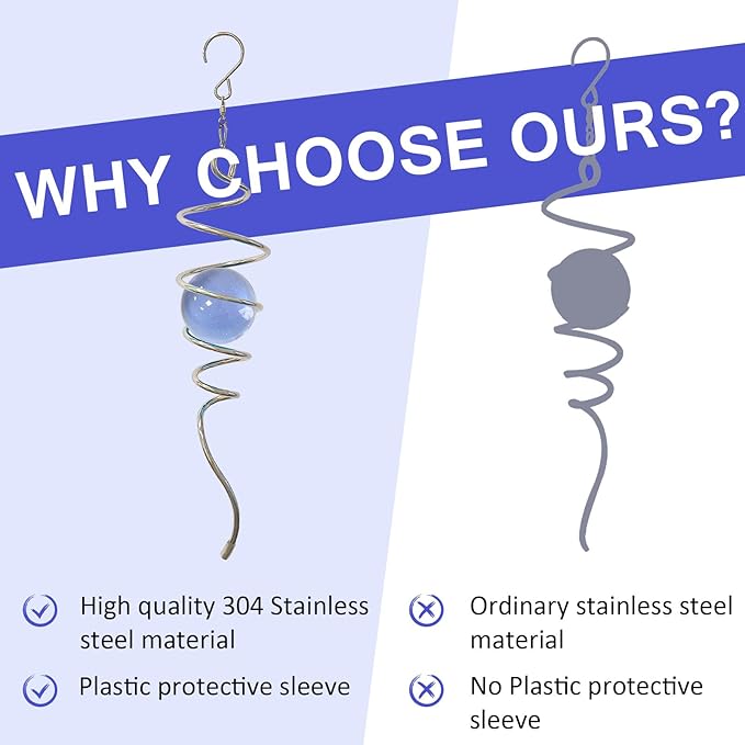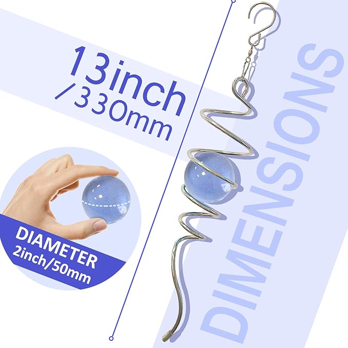 • 【DURABLE AND ATTRACTIVE】:The gazing ball spiral is an unique hanging ornament ,Also it can help to stabilize 3D wind spinners or yard decor from swing when it rotate. The glass ball seems to move up and down like floating and dancing in air while spiral tail rotating, presents the magical visual illusion, can help calm and relax the mind, reduce anxiety and allow to better focus your mental attention.