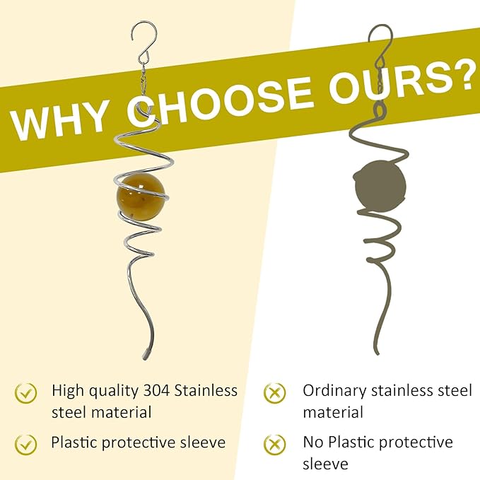 • ✔【Unique visual Design】The wind spinner tail gazing ball spiral is an unique hanging ornament,Also it can help to stabilize 3D wind spinners or yard decor from swing when it rotate.When the spiral tail rotates to the left or rotates to the right , the glass ball seems to move upwards or downward,the glass ball seems to like floating and dancing in air, presenting a magical optical illusion!