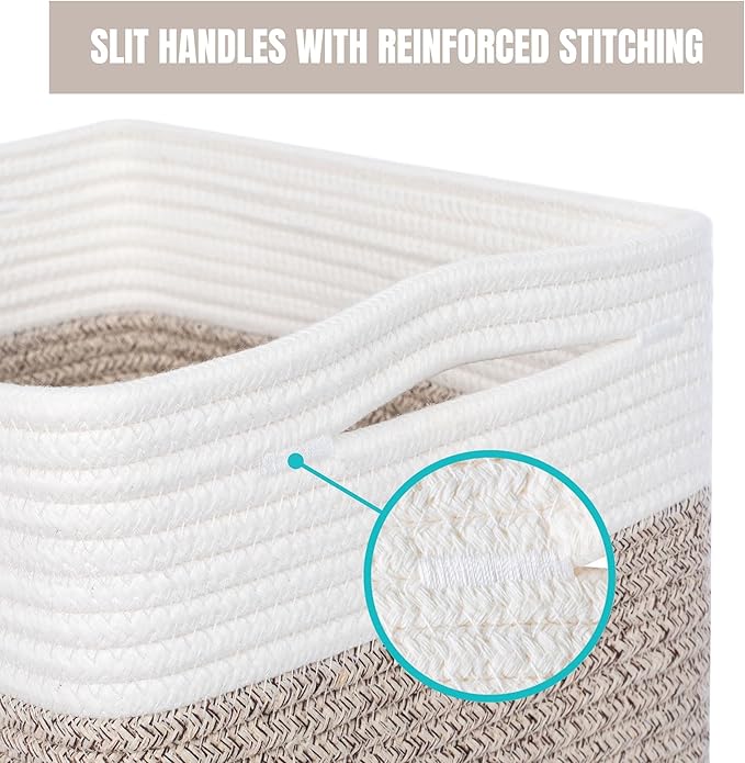 • Handcrafted & No Sharp Edges - Handmade from premium materials, our baskets are soft to the touch, yet sturdy enough to hold its shape. The workmanship ensures there are no sharp or hard edges to scratch furniture. Use them with complete peace of mind in recreation room, playroom, living room, bedroom, nursery room, bathroom, laundry room, mudroom, pantry, arts & crafts room, home office or even garage.