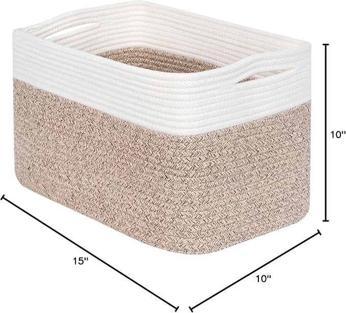 • Well-Sized Bin with Elegant Slit Handles: 15" (L) x 10" (W) x 10" (H). Our basket is handmade handmade with flexible material, which may result in slight size variations. Measurements should be taken from the center of each side to the center of the opposite side after the bins are fully unfolded & expanded. Taking measurements along just one side or when it is folded may result in smaller measurements due to the rounded corners and folding.
