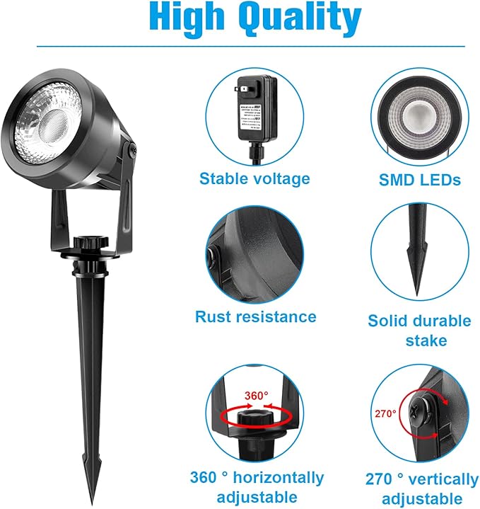 • 【Organize a colorful night club for your house】16 color changing Christmas spotlights paired with 4 modes. You can choose Flash, Strobe, Fade or Smooth. You can also fix a color which you like. In the evening, Christmas outdoor low voltage landscape spotlights create a wonderful and colorful RGB lighting display for your family.At the same time, we added mixed white light and warm light. In addition to setting up colorful lighting for festive occasions, it can also be used for daily lighting.
