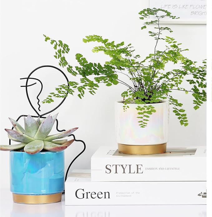 • Rainbow Pearlescent Glazed Design With Drain Holes: The rich color of these plant pots indoor is covered with a rainbow look. Large drain holes are good for draining and are perfect for home decoration.