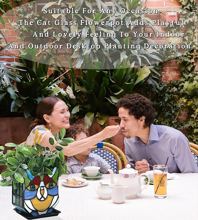 • HOME DECOR:This planter is also perfect for those who enjoy gardening but have limited outdoor space;Bring the beauty of nature indoors with the Stained Glass Cat Planter and add a touch of whimsy to your home decor