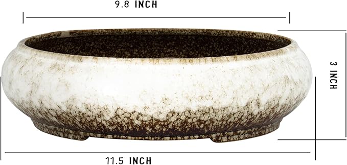 Succulent Pots - 11.5 Inch Ceramic Bonsai Pots with Drainage, Large Shallow Succulent Planters for Indoor Outdoor Plants, Round Glazed Cactus Flower Plant Container Bowl Home Desk Decor(White)