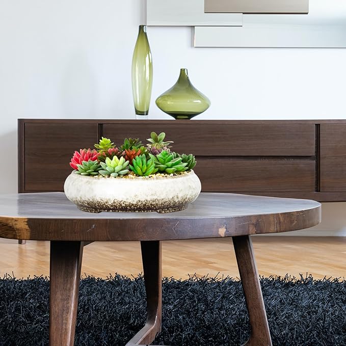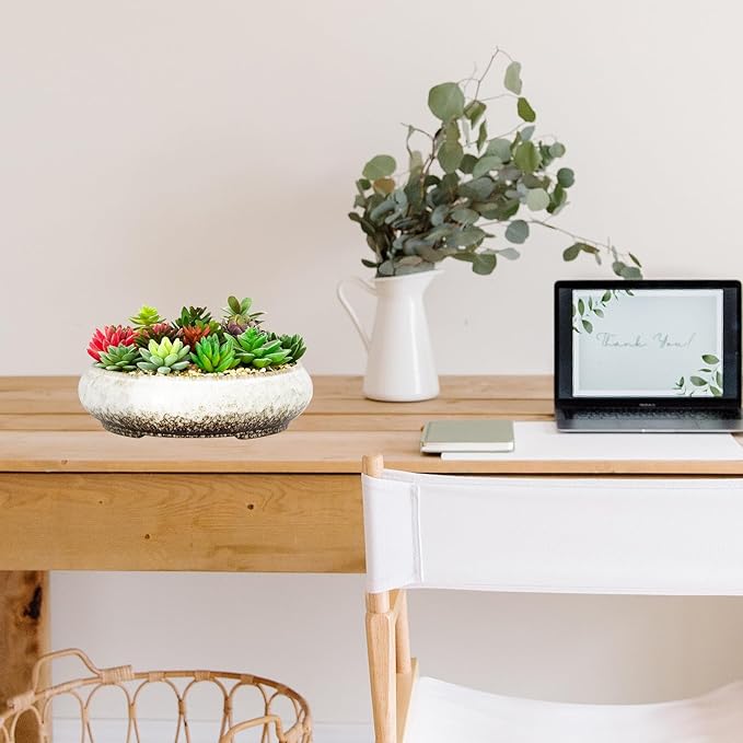 • Stylish Design: Round shape with modern white glaze adds a touch of sophistication to any space.