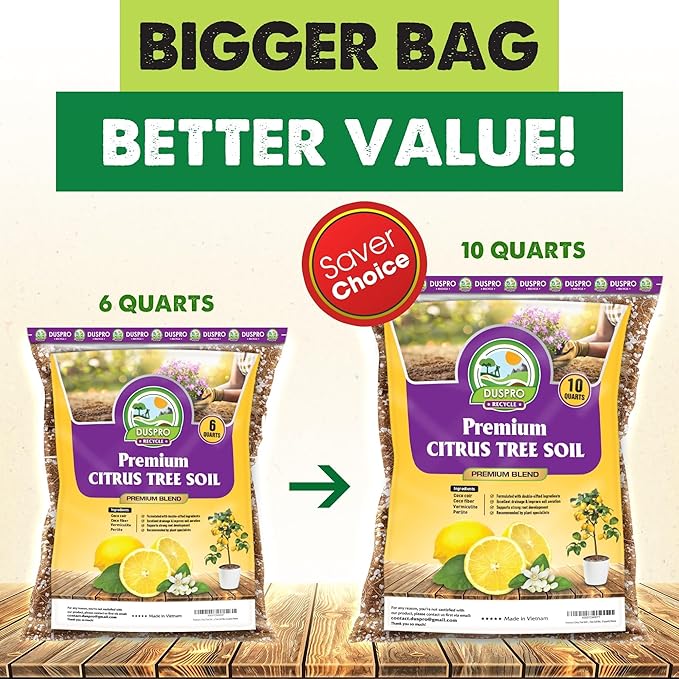 DUSPRO Recycle Citrus Tree Potting Soil Mix for Potted Lemon Tree, Specialized for Oranges, Fruit Tree Indoor Planting Pre-Mixed 4-in-1 Ready to Use (6 Quarts)