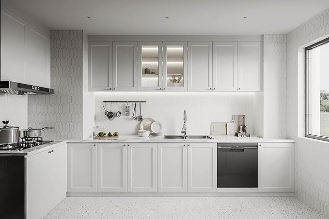 • [SIZE] -L19.68xW1.96ft/236inx23.6in, covers 38.57 sq.ft[COLOR] -White [MATERIAL] -Vinyl [LINES]-Embossed [WATERPROOF]-Easy to clean