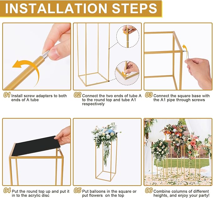 • 【Elegant Gold Design】Our metal plant stand set features a stylish gold color and tall cylinder design, making it the perfect addition to any party or wedding decor. The elegant look and feel of these stands will enhance the beauty of any indoor or outdoor space.