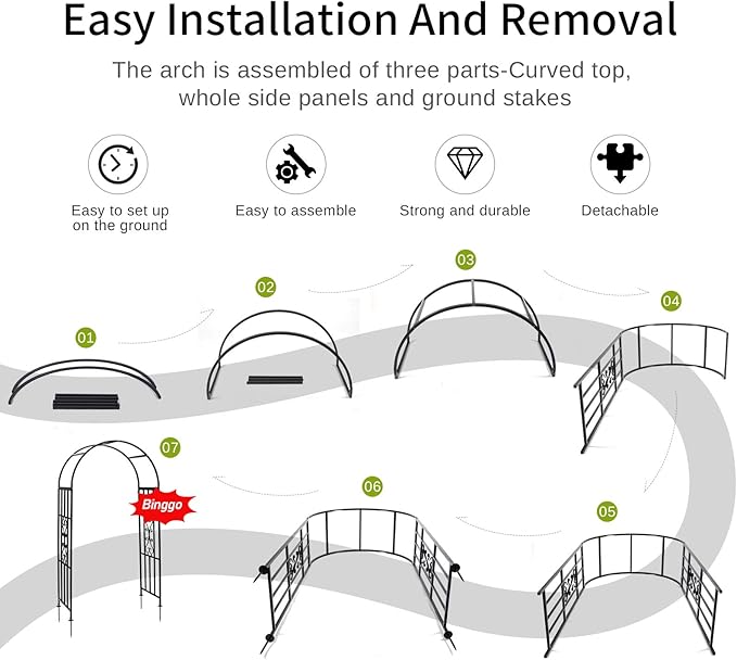 • [Multifunctional]: Our arch can be used as a path way which adds interest to your garden and can also be used as a wedding arch or any other outdoor ceremonies.