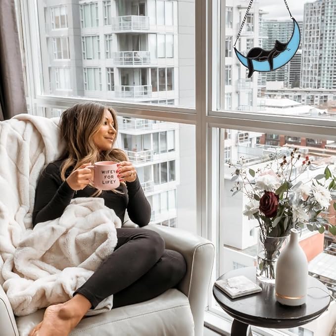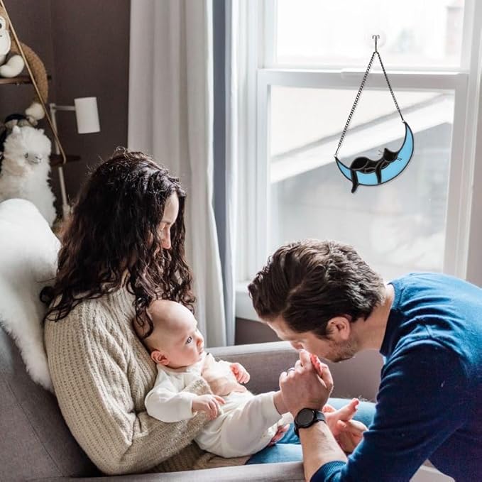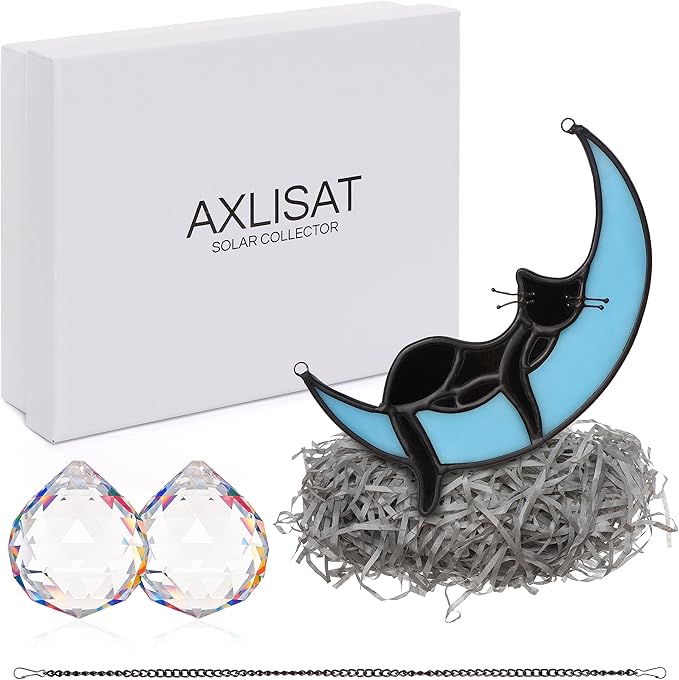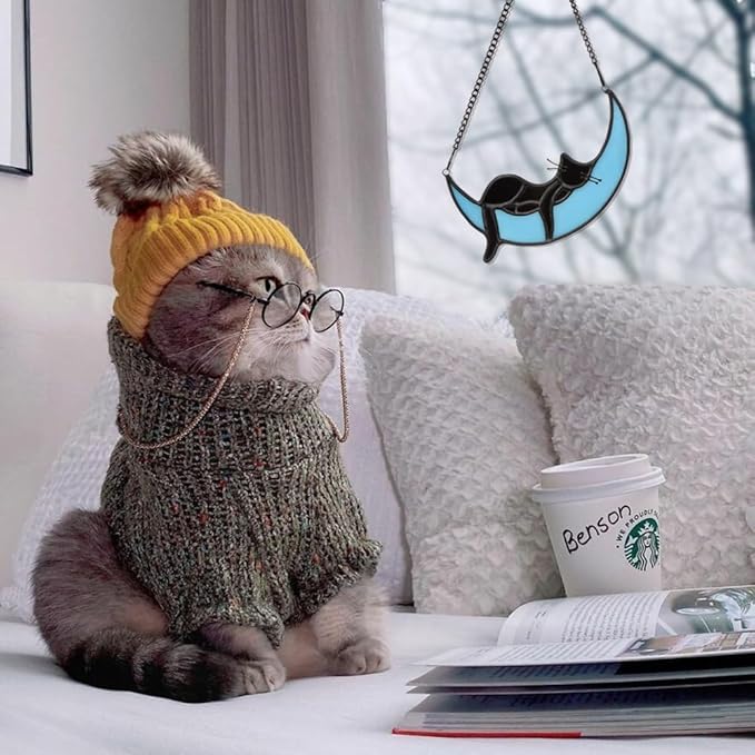 • STAINED GLASS MOON CAT MATERIAL:The Blue Moon Black Cat is made up of hand-cut colored glass plates, and every color is hand-painted and then welded together with copper foil. Because of its unique craftsmanship, every product is unique (Note:The product glass may have small bubbles due to the process)