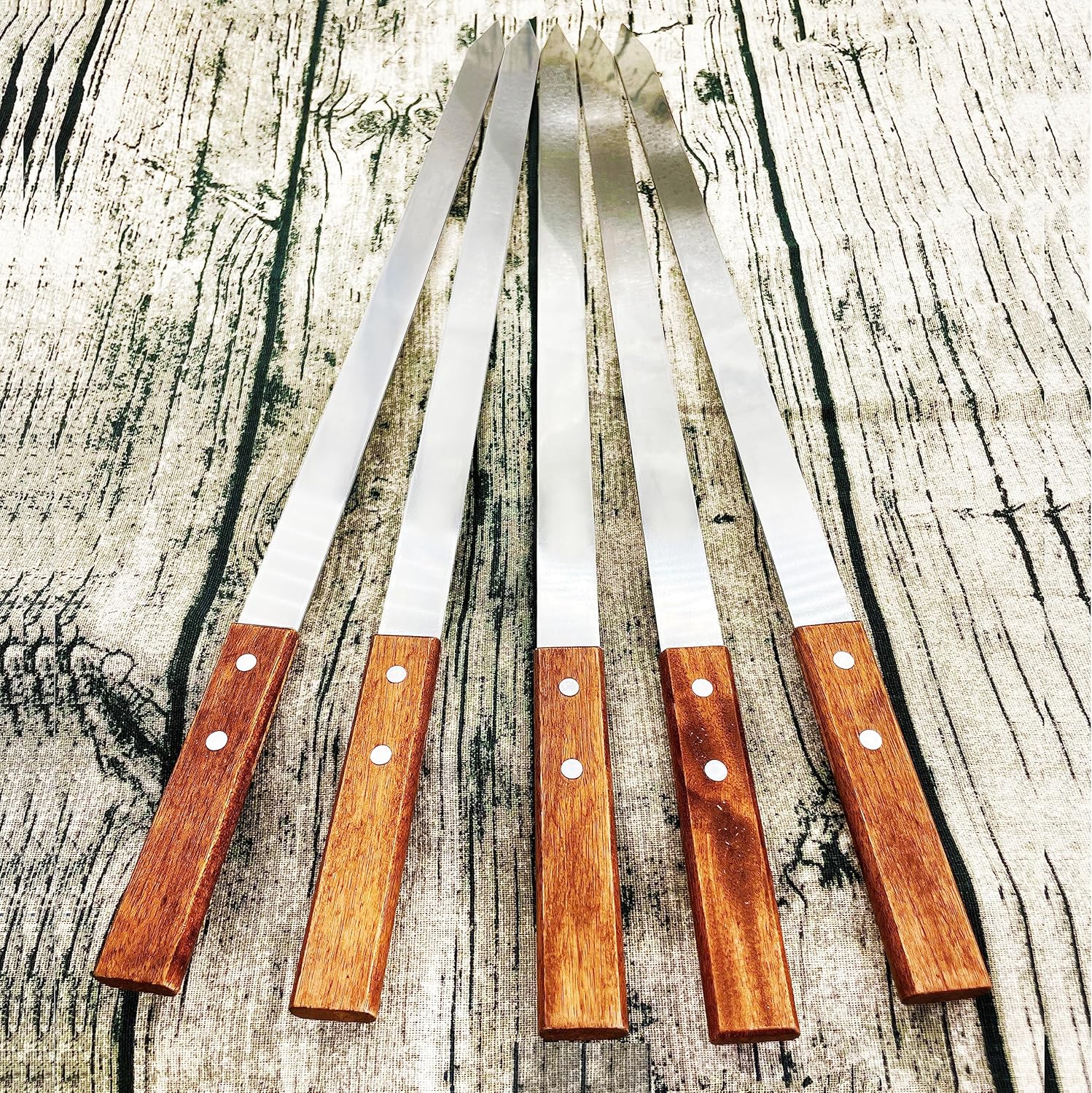 • 【PERFECT DESIGN】length is 26.6'',width (blade) is 0.91'',thickness is 0.078 '',large blade,The kabob skewers can keep your food from spinning/rolling.Skewer is so wide,heat well distributed during baking.Kabob sticks are solid and thick,they are hard and durable,Extra long and wide,thick and flat design,Suitable for barbecue large pieces of food,can grill a lot,and can stop the meat from rotating on the skewer.Wider and solid oak wooden handle,comfortable to hold,it also can protect your hands.
