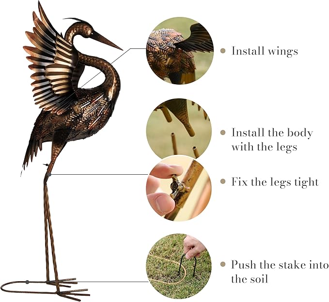 • 【Original Design】These metal crane statues feature a beautiful brass color that glimmer in the sunlight, adding a lovely touch to any decor