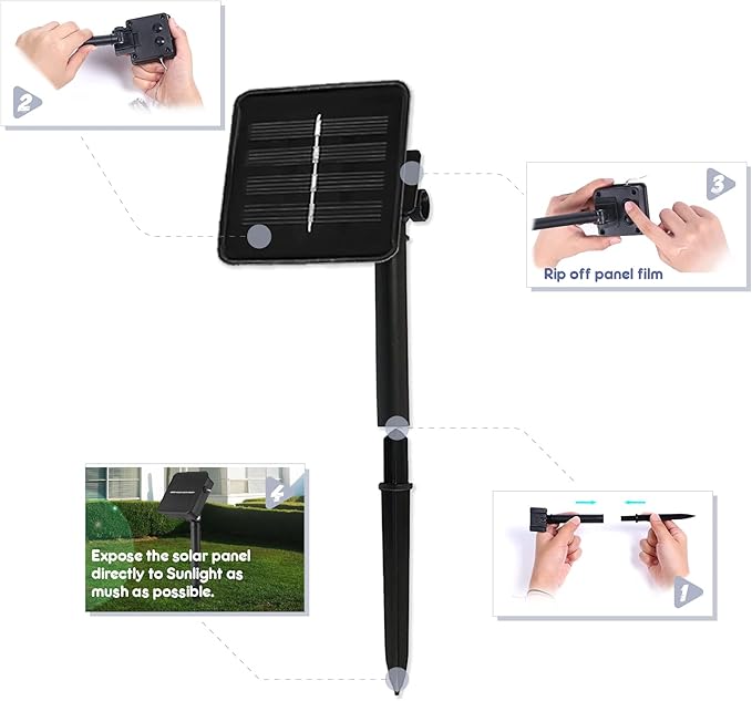 • 【8 Lighting Modes】 The solar panel offer 8 different blink modes. In rainy days, with low batteries, the panel would stop lighting early to save energy for the next night.