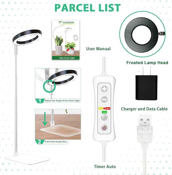 yadoker Plant Grow Light, LED Growing Light Full Spectrum for Indoor Plants,Height Adjustable, Automatic Timer, 5V Low Safe Voltage,Idea for Small Plant Ligh