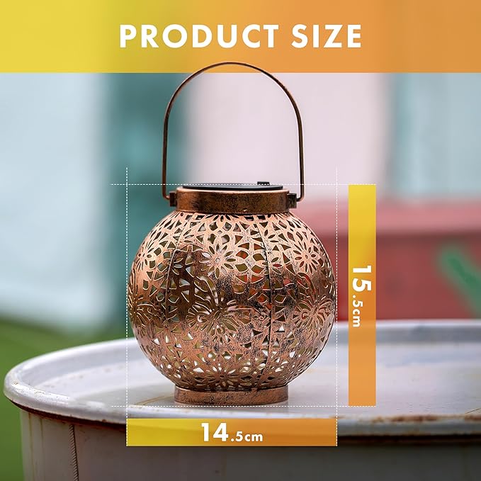 • 【WIDELY APPLICATION】The decorative lantern can be widely used in different occasions, including cafe, patio, yard, park, pathway, garden, etc. What's more, the solar hanging lanterns comes with hooks, so they can be hung on porches, trees, pergolas or put them on table two ways to use, Perfect gifts for holidays, housewarming and gardening.