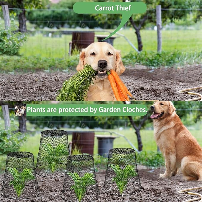 • 🌱Durable and Rust-Resistant: Sapbontchi garden cloches for plants, black metal protective covers are made of high-quality metal and PVC coating, ensuring a smooth surface and sturdy construction. Garden cloches for plants large won't rust and can be used continuously for multiple quarters, providing long-lasting protection for your plants.