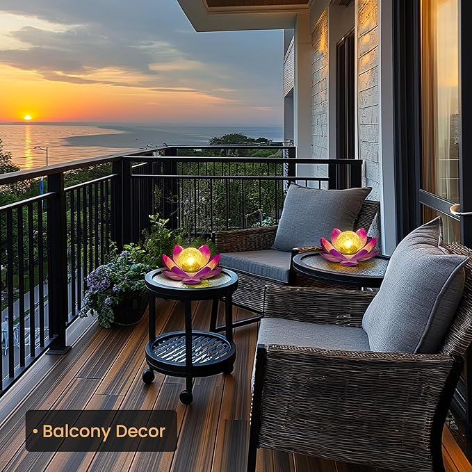 • 🌞【Auto ON/OFF & Energy Efficiency】🌞100% solar-powered Lotus solar lights, save you time and electricity bills. This solar table light will charge automatically during the day, and it will light up automatically (warm white light )at night to illuminate your garden. (Turn the switch to the ON position before use.)