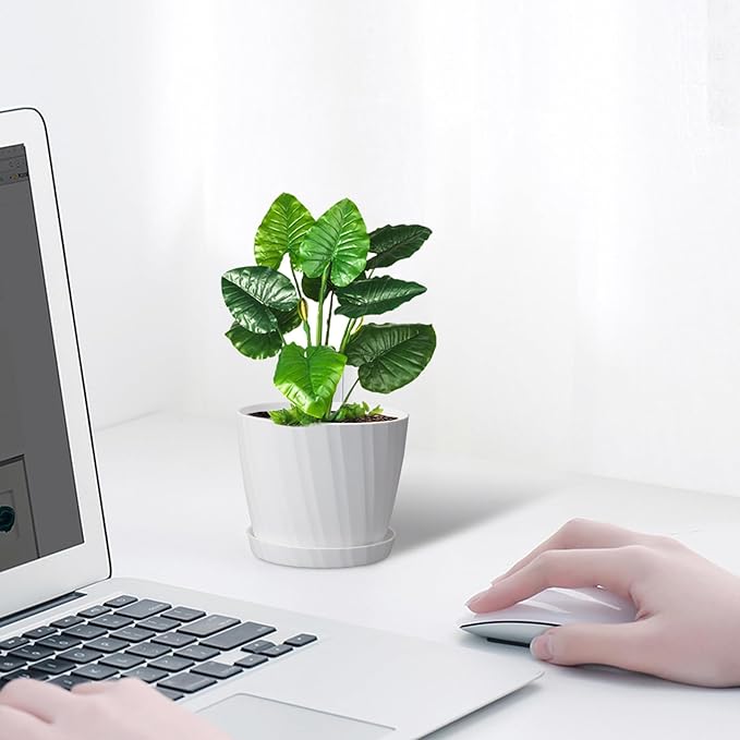 • MODERN MINIMALIST DESIGN - White matte finishing surface plant pot with strip pattern and round shape design bringing out a modern minimalistic styled and elegant. And bottom surface has feet like lines to prevent from sliding. This plastic planter will bring a modern and stylish visual. Great for all house plants.