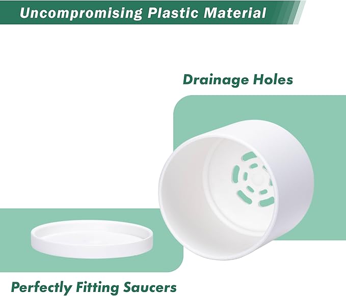 • Drainage holes at the bottom of the pot, with seamless design detachable, and perfectly fitting saucers included.
