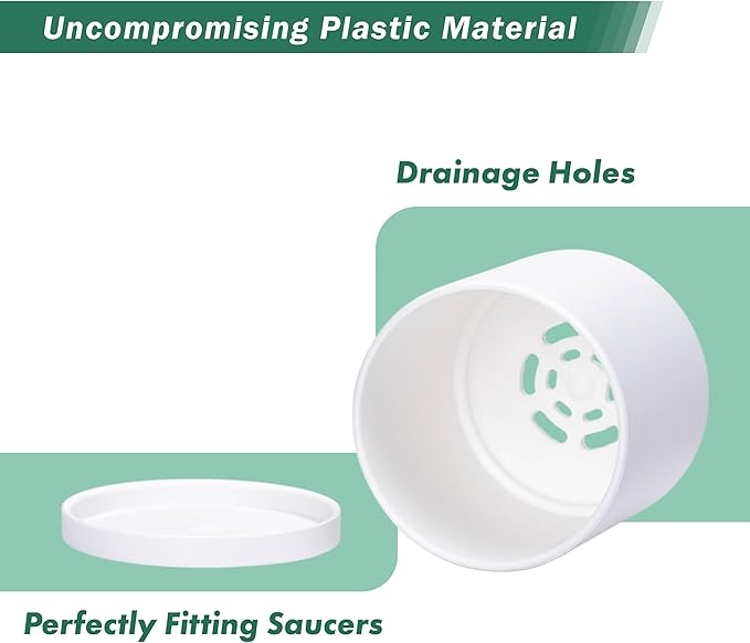 • Drainage holes at the bottom of the pot, with seamless design detachable, and perfectly fitting saucers included.