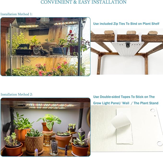 • Minimalist heat dissipation design & Easy to Use: The grow light 11.81'' x 3.14'' plant lamps are made of pure aluminum alloy with excellent heat dissipation,grow lights for indoor plants full spectrum Ideal for indoor use on plant shelves, cabinets, walls and other places.grow lights for indoor plants Installing our plant light is simple, with Double-sided Tapes * 10pcs and Durable zip ties with 16pcs make the grow lights can use anywhere indoors at ease