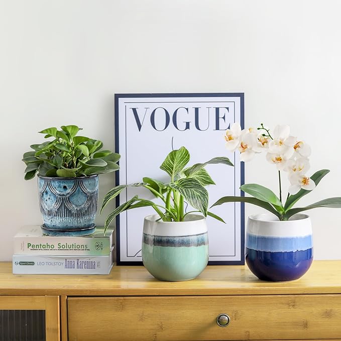 • ๐——๐—ฒ๐—ฐ๐—ผ๐—ฟ๐—ฎ๐˜๐—ถ๐˜ƒ๐—ฒ ๐—ฝ๐—น๐—ฎ๐—ป๐˜ ๐—ฝ๐—ผ๐˜๐˜€โ€”The Reactive Glaze Blue flower pots feature its special stylish appearance, perfect for decorating your home, living room, windowsill, office, desktop, courtyard, patio, etc. The planters for indoor plants are exclusive designs that adds a touch of elegance to any room, with colors that match any decorative style.