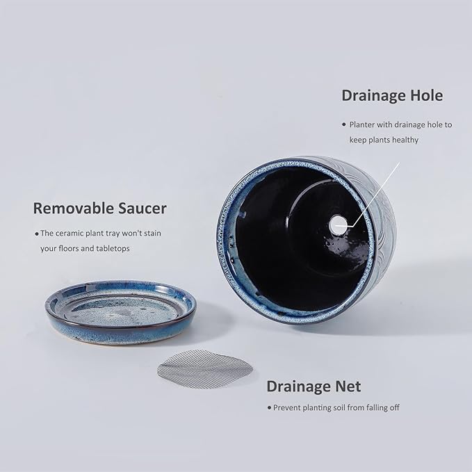 • ๐—ฃ๐—น๐—ฎ๐—ป๐˜๐—ฒ๐—ฟ ๐˜„๐—ถ๐˜๐—ต ๐—ฑ๐—ฟ๐—ฎ๐—ถ๐—ป๐—ฎ๐—ด ๐—ต๐—ผ๐—น๐—ฒ & ๐—ฆ๐—ฎ๐˜‚๐—ฐ๐—ฒ๐—ฟโ€”The plant pots with drainage Hole ensure your plants stay healthy. No more worrying about overwatering or root rot. Provide pot-fitting trays to store excess water and provide plants with constant moisture. The ceramic plant tray won't stain your floors and tabletops. It is an ideal planter for indoor plants.