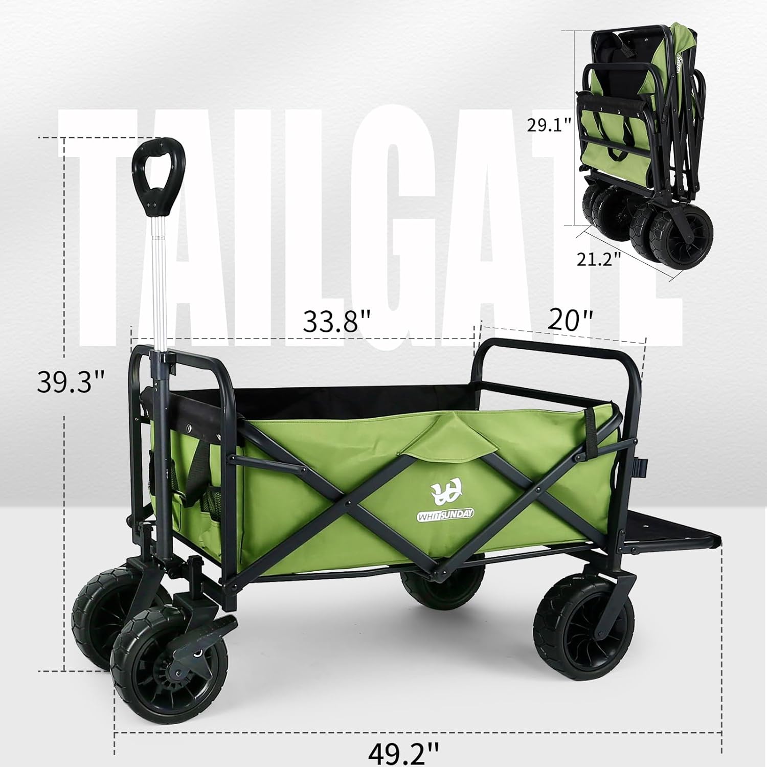 Whitsunday Collapsible Wagon with Tailgate for Camping Outdoor (Green, No Table)
