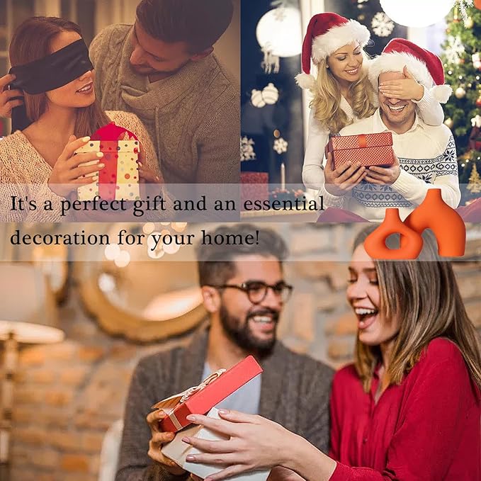 CEMABT Orange Ceramic Vase Set of 2 for Modern Minimalist Bohemian Decor,Round Matte Donut Vases for Pampas Grass-Perfect for Living Room, Dining Table, Office Bedroom Shelf Decor Entryway, Console