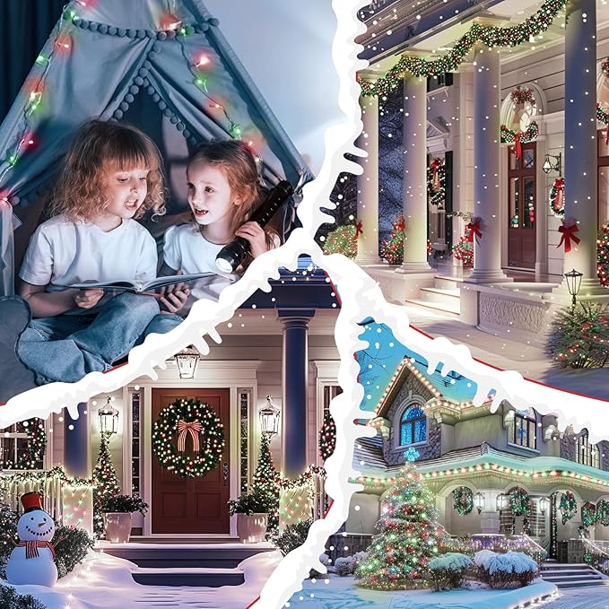 • Memory Function: These dual colors Christmas lights with a built-in memory chip, will save your last lighting modes, no need to reset every day!