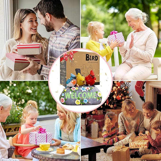 • 【Perfect Gifts for Women, Moms & Garden Enthusiasts】: Surprise your loved ones who enjoy gardening or appreciate unique decor with this exquisite bird family solar statue, making it an ideal gift for birthdays, Mother's Day, or housewarmings