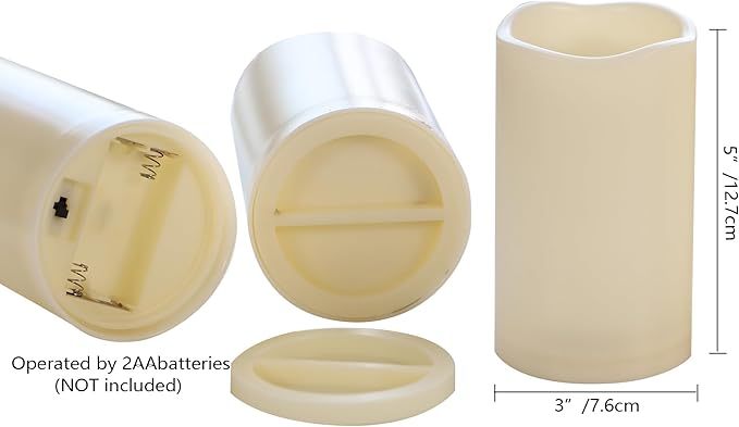 • Easy to use with timer. There is a built-in daily cycle timer inside each battery LED candle. Once the pillar candle is turned on, the timer starts to work. The LED flameless candle stays on for 6 hours and turns off automatically for the next 18 hour. This 6-hour on, 18-hour off cycle repeats every day. The daily cycle timer saves the troubles of turning on and off this flameless LED candle light manually.