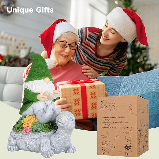 JOBOSI Dwarfs Solar Light Garden Decor Yard Decor Turtle Decor Santa Claus Turtle Solar Light Dwarf Garden Gnome Statues Gifts for mom, Gifts for Grandma