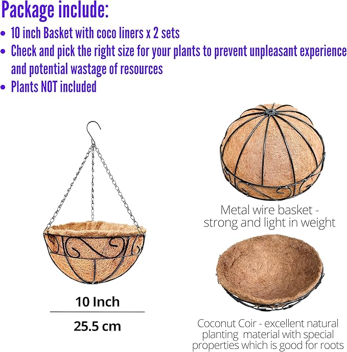 • SHOP WITH CONFIDENCE: USPTO DESIGN PATENT PENDING. Each hanging pot with coco coir liner is carefully inspected before shipping to ensure quality. If you encounter any issues or have a change of mind, you can return the baskets for a refund or exchange for a new set.