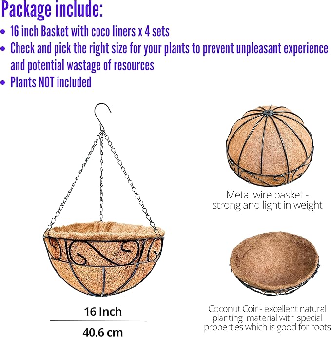 • SHOP WITH CONFIDENCE: USPTO DESIGN PATENT PENDING. Each hanging pot with coco coir liner is carefully inspected before shipping to ensure quality. If you encounter any issues or have a change of mind, you can return the baskets for a refund or exchange for a new set.