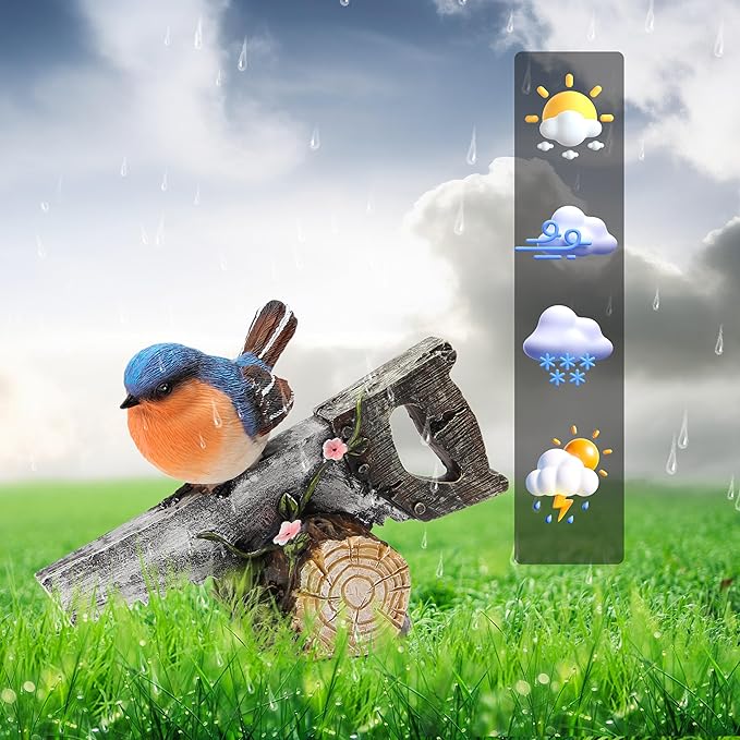 • Size & Material : The item size is 4.9”x6.3”x3.1” & 0.48LB.The bird statue is made of qualified resin material and coating with durable material,it is waterproof and the color will not fade under long time sunshine.