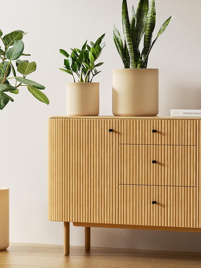 • Unique Wax Finish Surface Plant Pots: Simple, elegant, and modern, these ceramic planters harmonize greenery and pottery; the wax finish contrasts with variegated foliage and blade-shaped leaves, while the plain outline offers a simple canvas for branches and leaves; perfectly paired with your Mid-Century plant stand, this 10-inch planters set elevates your living space with a touch of sophistication and style